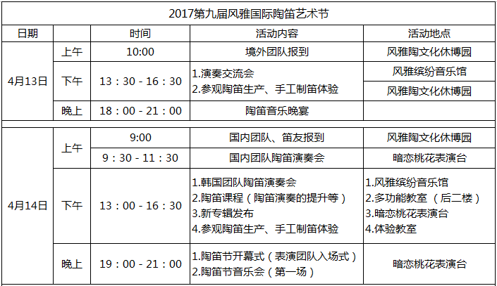 2017第九屆風(fēng)雅國(guó)際陶笛藝術(shù)節(jié)活動(dòng)日程