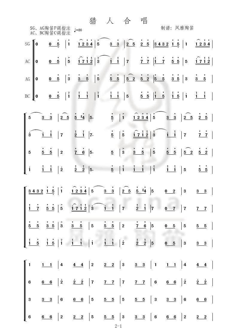 2016“風(fēng)雅杯”全國陶笛重奏比賽參考曲譜