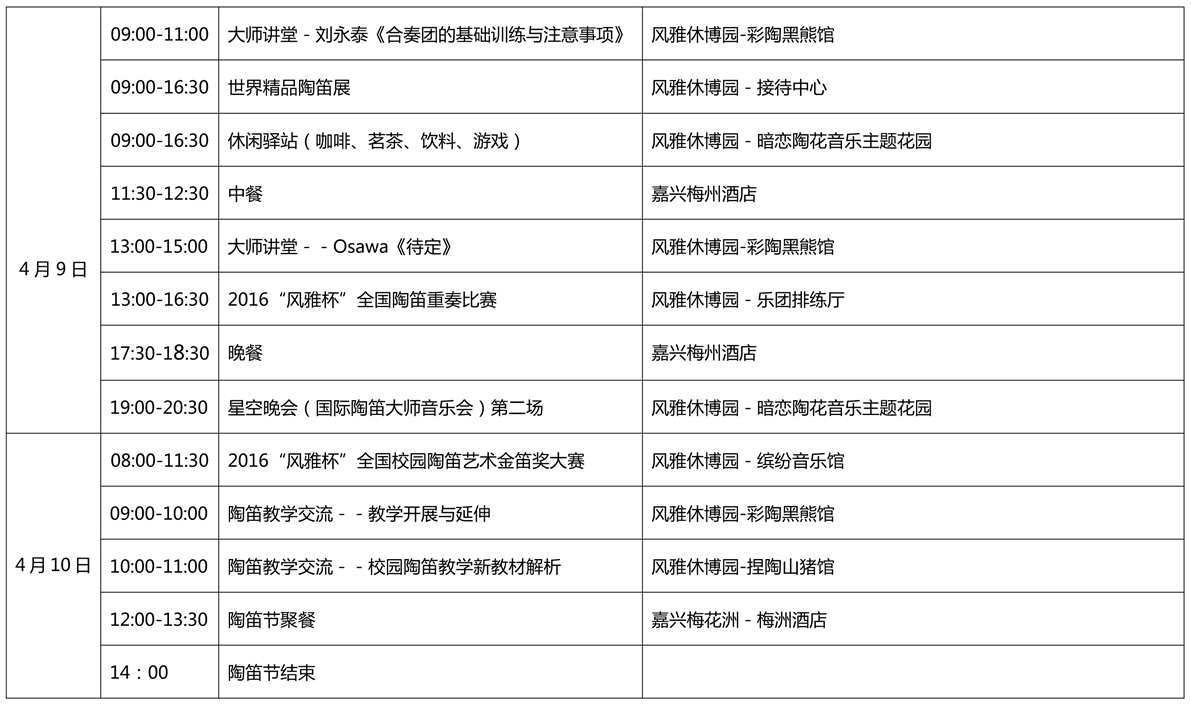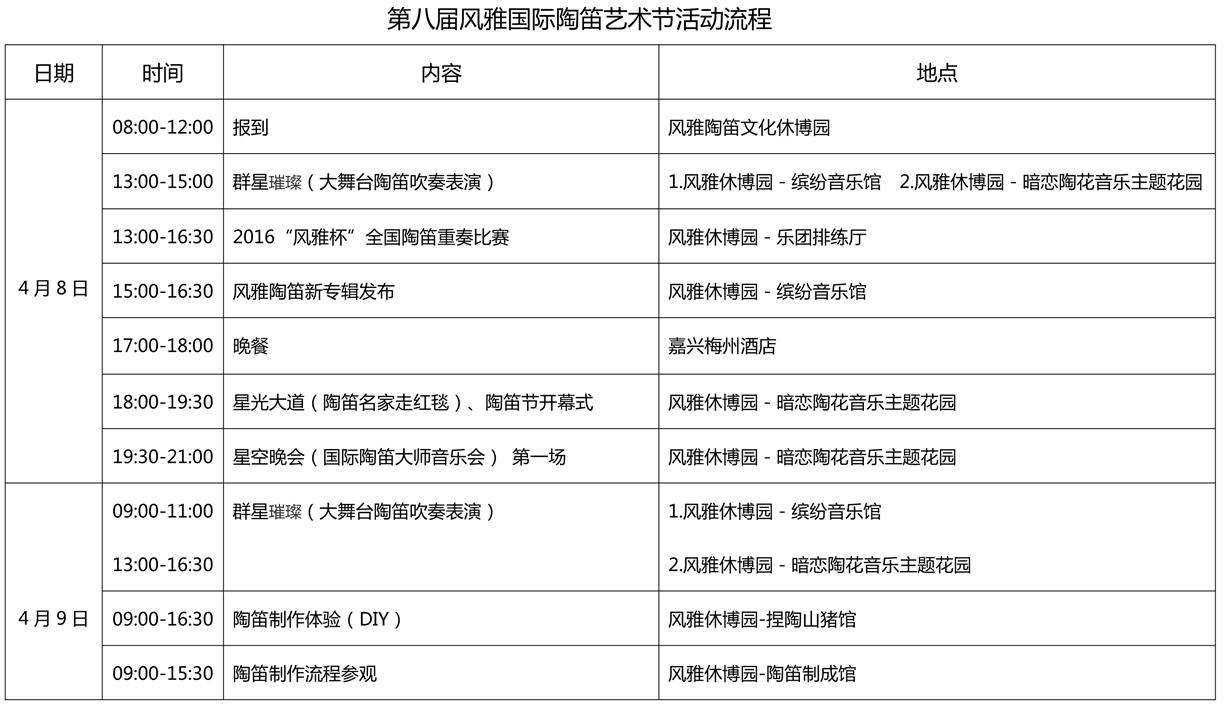 第八屆風雅國際陶笛藝術節(jié)活動流程