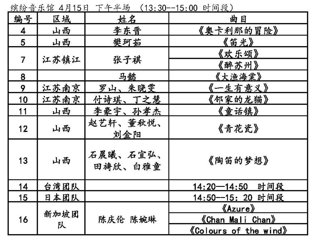 4月15日表演節(jié)目單及時(shí)間
